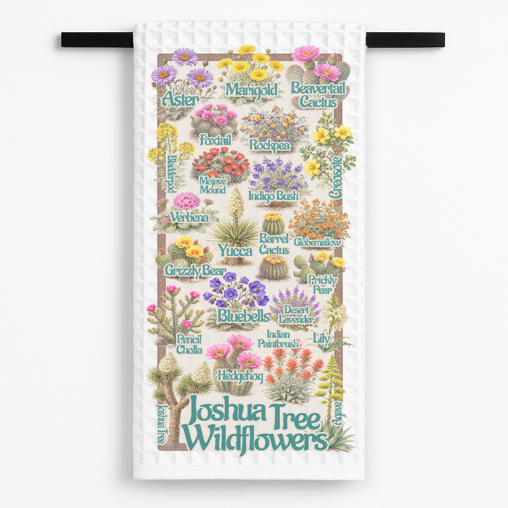 Bring a splash of color and wit to your kitchen with the Joshua Tree Wildflowers Tea Towel! Designed for those who appreciate the beauty of nature.