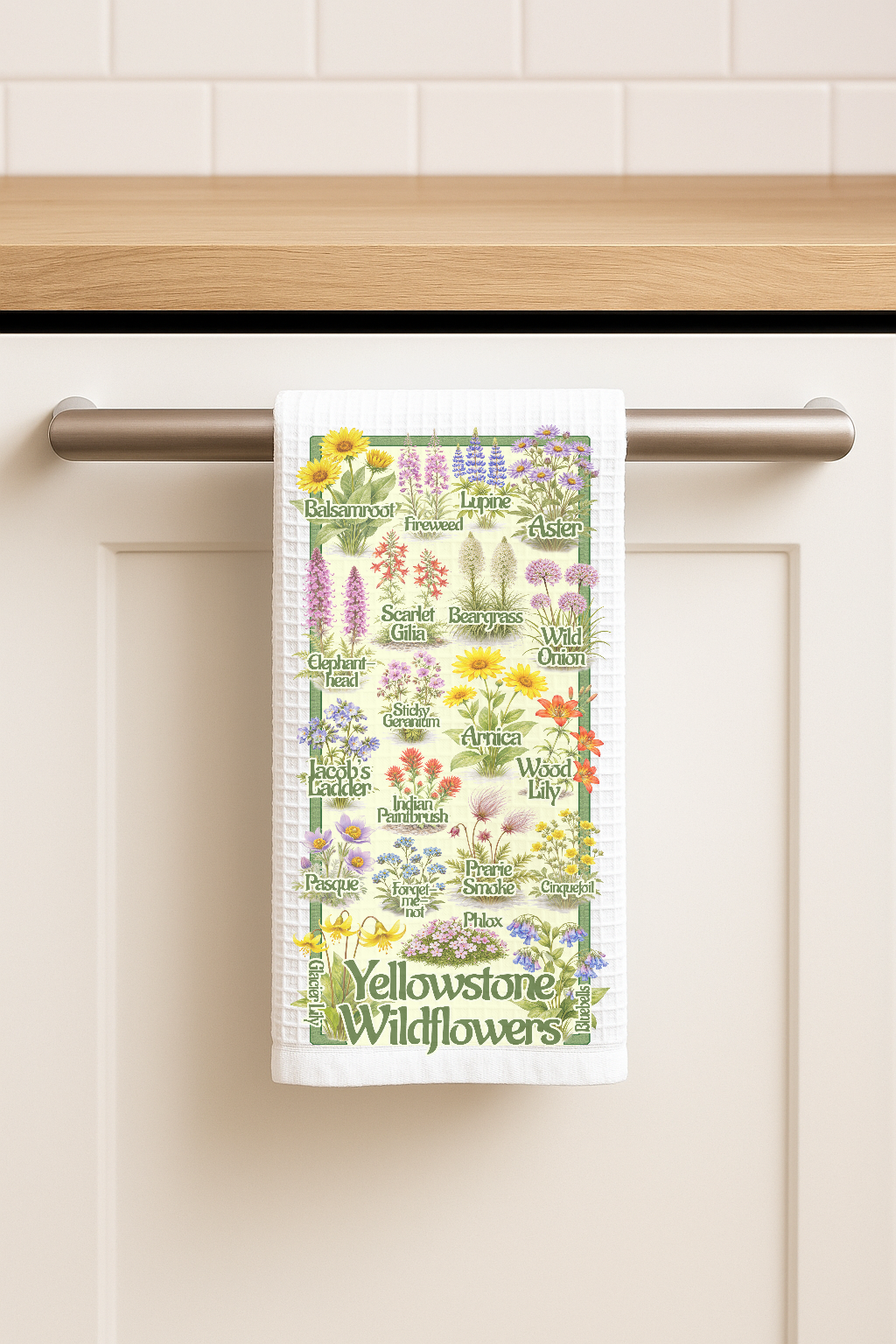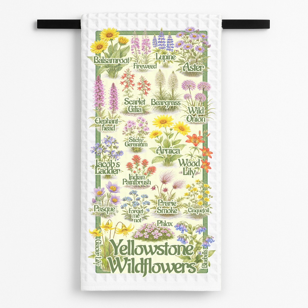 Bring a splash of Yellowstone's wild beauty into your home with our playful tea towel! Perfect for adding a touch of retro-future flair to your kitchen.